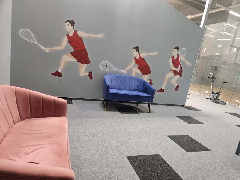 Squash to dynamika, szybkość i energia! Aby te emocje nie przenosiły się na hałas i by utrzymać obiekt w nienagannym stanie, FLOOR TEAM STUDIO PODŁÓG zrealizował montaż wykładziny dywanowej w płytce Orlando w Krakowie.